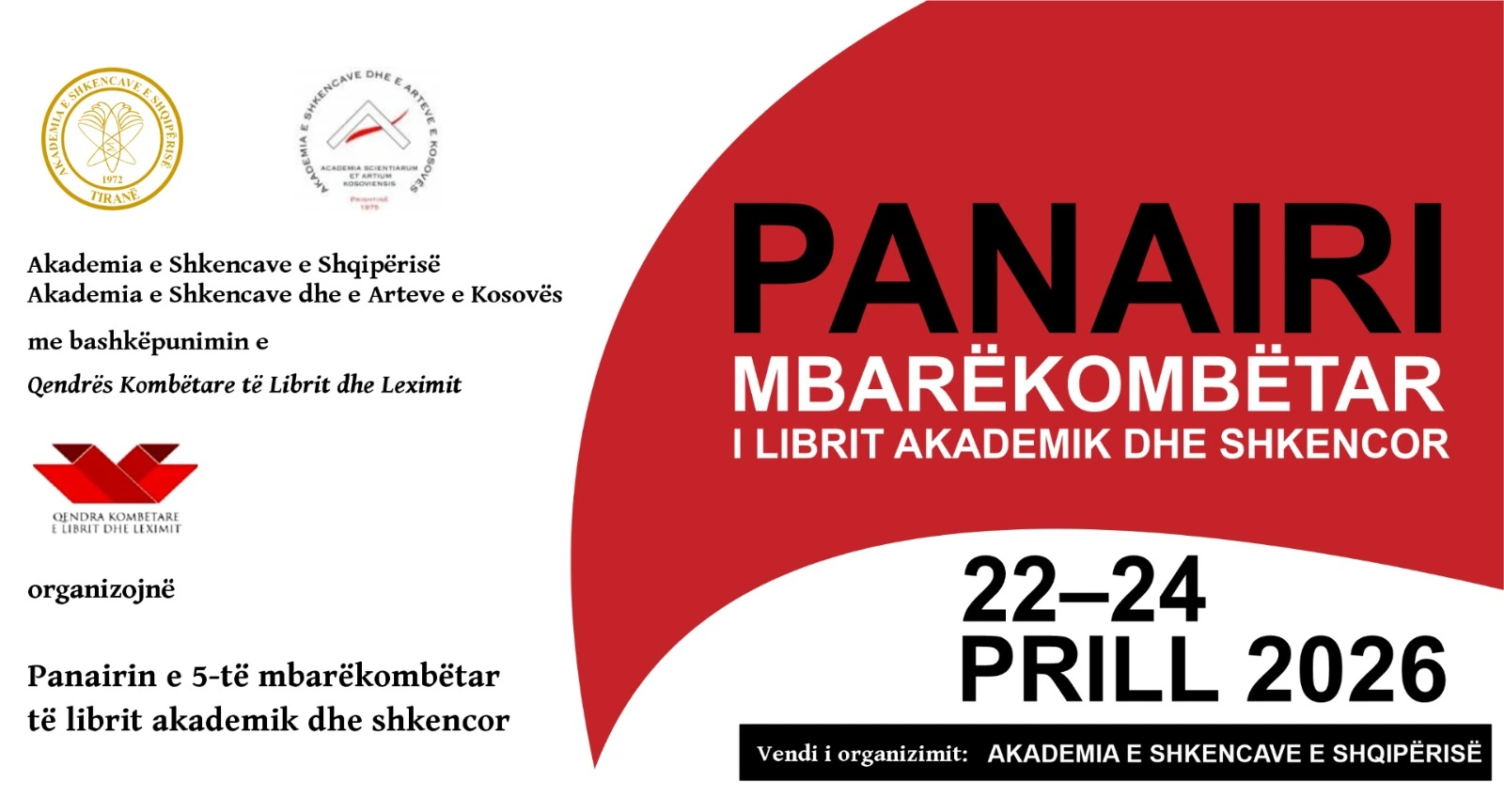 Kliko: Panairi mbarëkombëtar i botimeve akademike e shkencore 22-24 prill 2026, Edicioni V