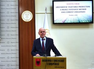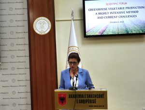 Akad. Anila Hoda, sekretare shkencore e Akademisë së Shkencave të Shqipërisë, mbajti fjalën përshëndetëse në emër të Kryesisë. Ajo vuri në dukje se tema që trajtohet në këtë forum është jo vetëm aktuale, por edhe strategjike. Prodhimi në sera është shndërruar në një motor të zhvillimit të bujqësisë intensive, duke mbuluar një pjesë të madhe të nevojave ushqimore të vendit dhe duke krijuar hapësira të reja për konkurrencë në tregjet e jashtme. Por, njëkohësisht, ai na vendos përballë sfidave që lidhen me qëndrueshmërinë mjedisore, përdorimin racional të burimeve natyrore dhe përballimin e ndikimeve të ndryshimeve klimatike.